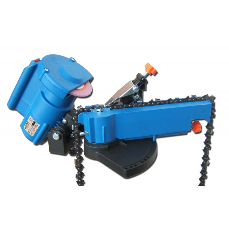 L’affûteuse de tronçonneuse avec avance automatique peut affûter tous les types de chaînes de +35° à -35°.